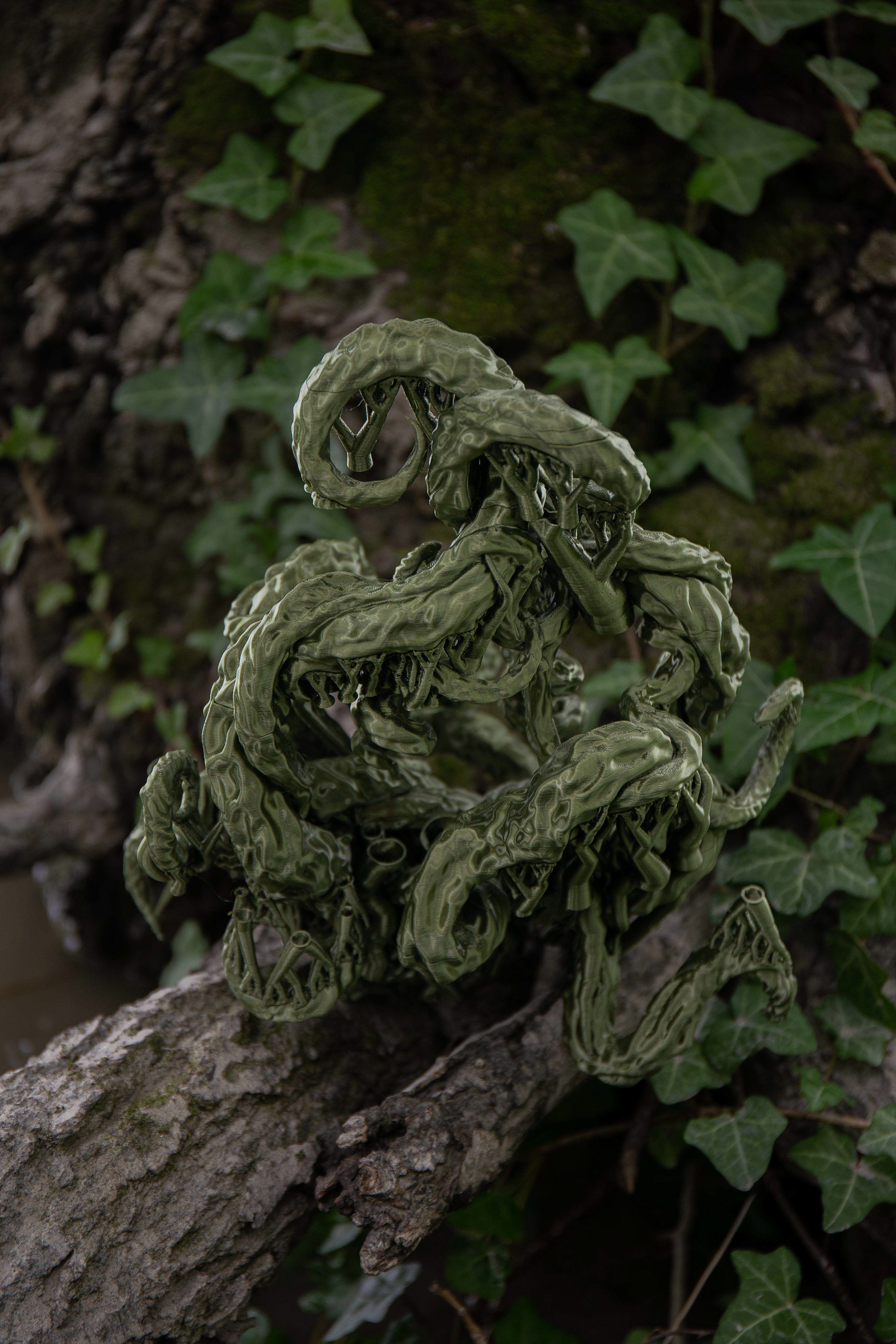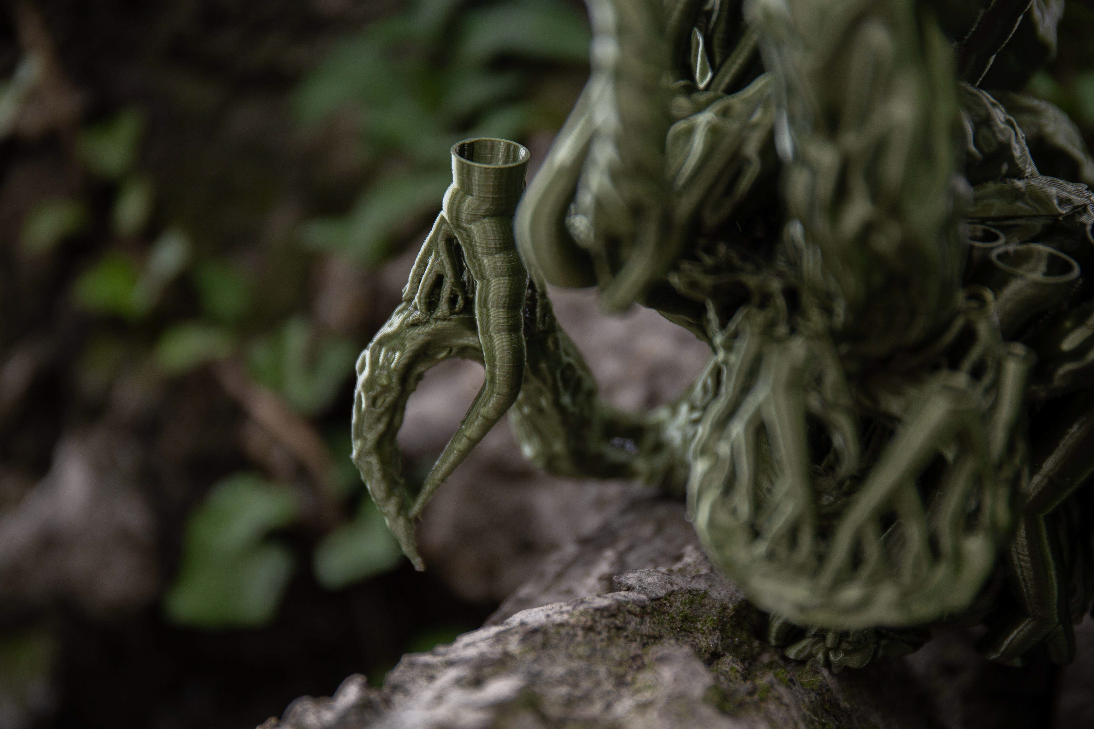 The (non)botanical bestiary consists of fictional creatures on the intersection of a plant and human, questioning the role of human imagination in conjunction with plant creativity and growth processes. Objects were inspired by the growth structures of climbing plants and trees in slovak forest ecosystems. A series of 3D printed objects from PLA material is a continuation of IVY BOOM project (2021) and How Did Daphne Turn Into a Plant (2022)